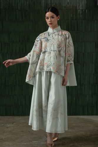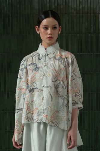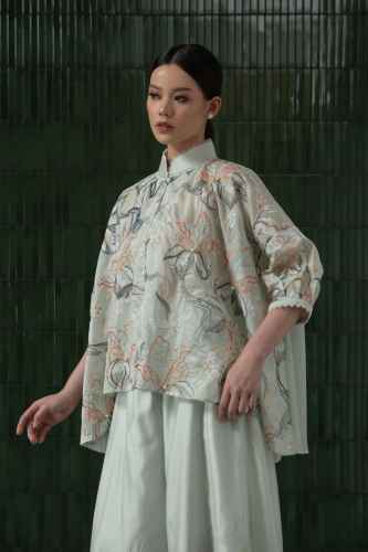 Made with silky breathable fabric, it features our original delicate embroidery. The lace trim along the edges adds a touch of modern femininity. Graceful and timeless, this top is ideal for formal celebrations or elegant evening affairs.