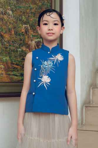 Belanja SekarangThis set pairs a sleeveless top with a feminine tulle skirt. The top features a mandarin collar and asymmetrical button closure, beautifully adorned with intricate floral embroidery for a traditional yet stylish look. Complementing it, the tulle skirt adds softness and movement, creating a lovely balance between cultural elegance and modern playfulness.