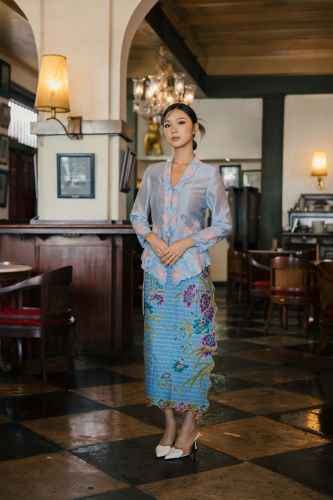 Belanja SekarangThis top is a kebaya-style blouse crafted from sheer fabric, featuring intricate floral embroidery. It has a scalloped hem and cuffs, with embroidery details that frame the neckline and front opening beautifully. The silhouette and delicate details give it an elegant and traditional yet graceful feminine charm.