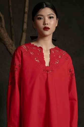 Belanja SekarangChantily dress is made from cotton fabric and has intricated embroidery details along neckline, sleeves and shoulders. The neckline features U shape cut that add a touch of elegance, making it suitable for both casual and semi-formal occasions. The loose silhouette provides comfort and relaxed fit.