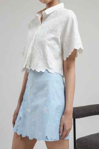 These shorts are designed with flowers embroidery panel that at the front, creating a skirt-look effect. They're made from twill stretch and have wide legs.