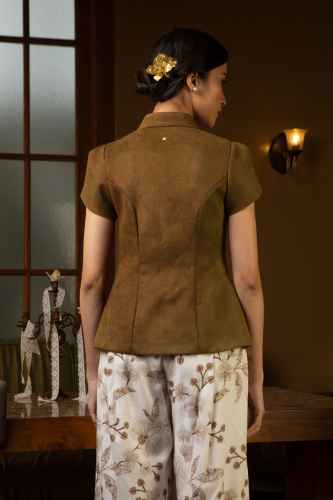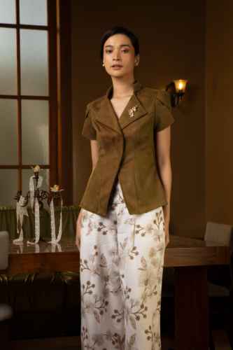 Belanja SekarangThis suede top features a tailored, feminine silhouette with a structured lapel-style collar that adds a refined touch. Designed with our Signature Ajeng Top's sleeves and clean paneling, it softly contours the waist for a flattering fit. The front opening creates a sleek, elongated line, while the rich suede texture brings warmth and understated elegance, making it perfect for a polished yet modern look.
