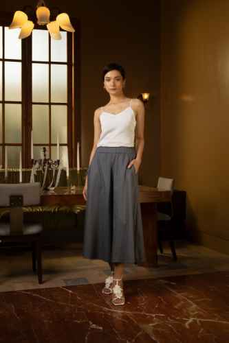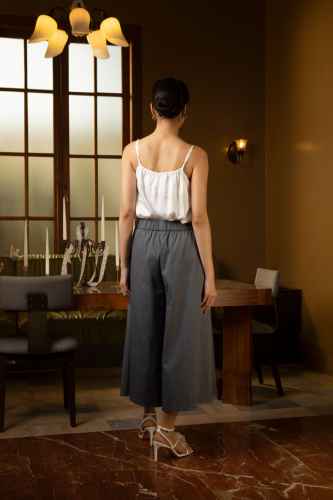 Belanja SekarangThese pants feature a wide-leg silhouette with a high-waisted fit that is both comfortable and stylish. It has an elastic waistband for ease and side pockets for practicality. The design offers a minimalist yet modern look, perfect for casual or semi-formal styling.