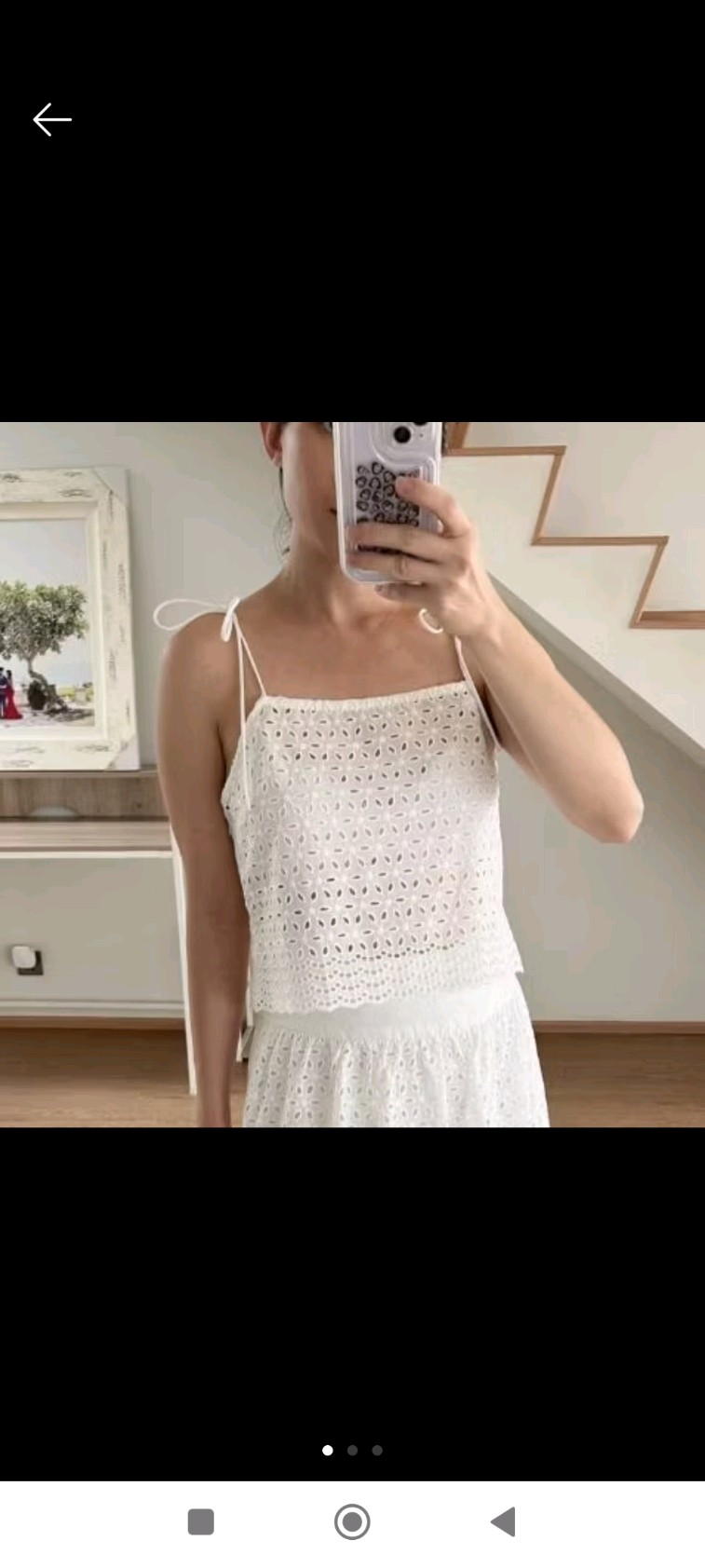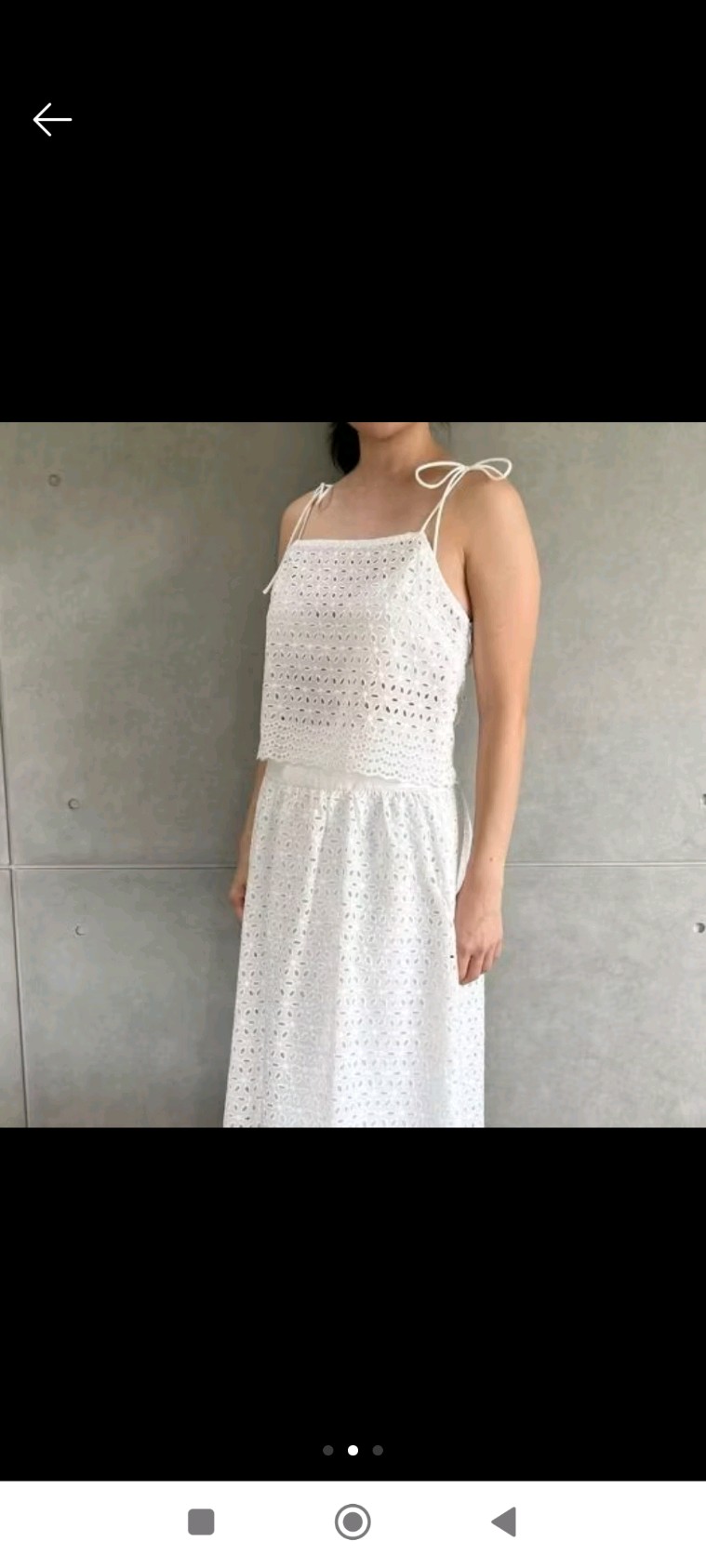 Belanja SekarangThe sleeveless top is designed with a straight neckline and tie-up shoulder straps. Paired with a matching high-waisted skirt, softly gathered at the upper hip and flowing effortlessly to a scalloped hem.